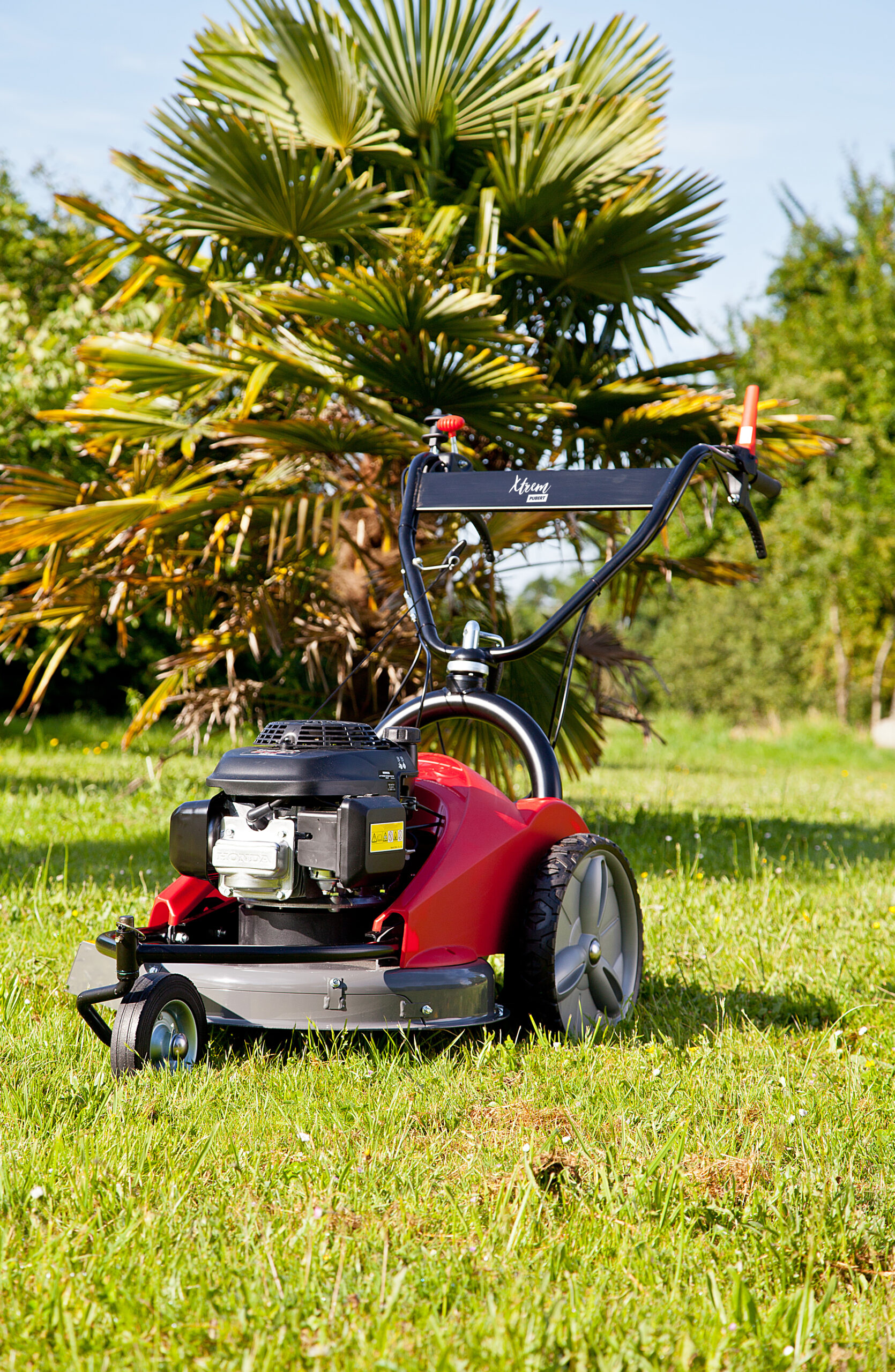 Cette faucheuse débroussailleuse possède une lame de type mulching qui permet un bon broyage de l’herbe, elle est montée directement sur l’arbre moteur avec un troisième palier de sécurité garantissant la protection du moteur contre les chocs. Le carter de coupe de 51 cm possède une trappe avant amovible. La tondeuse professionnelle XTREM s’adapte à tous les terrains grâce à sa hauteur de coupe réglable au guidon, et à sa roue avant pivotante ou blocable, selon la pente. La maniabilité est garantie par de grandes roues arrières équipées de roues libre. Pour votre sécurité une poignée type « homme mort » présente au guidon, assure l’arrêt moteur quand la pression se relâche.
